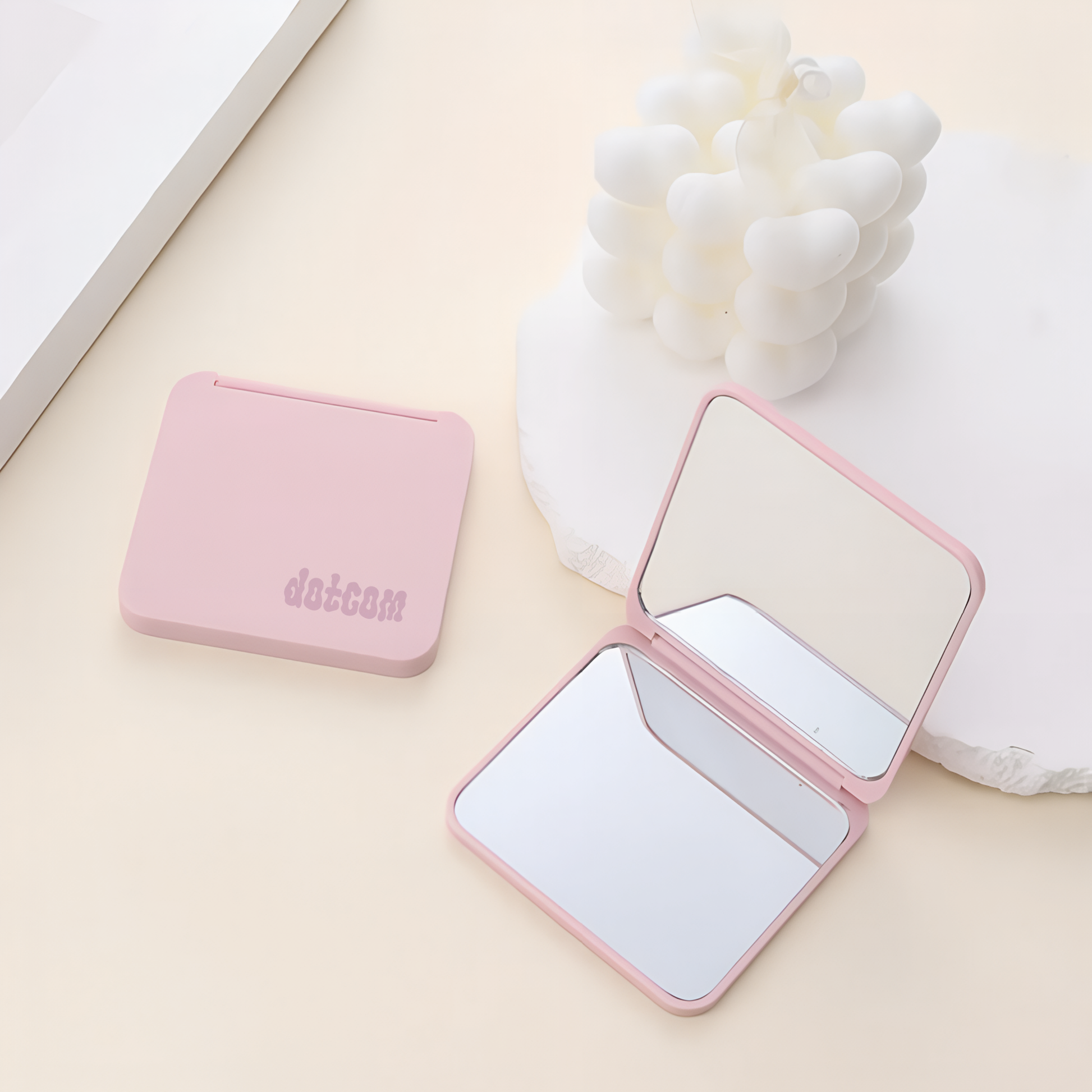 Lleva tu cuidado personal a todas partes con este espejo compacto y portátil. Su delgada cubierta se pliega para convertirse en soporte, facilitando su uso sin manos. Personalízalo con tu logo o mensaje fácilmente y destaca con estilo dondequiera que estés.